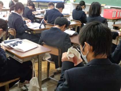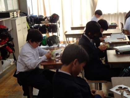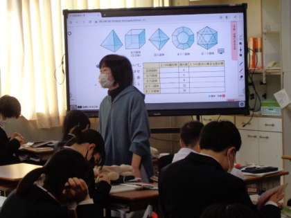 1年生の数学の授業は、立体図形。正12面体を実際に作成していました。