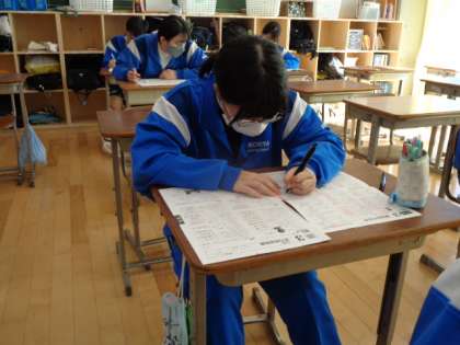 課題に向かって真剣に取り組む姿が見られました。がんばれ3年生!