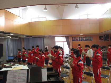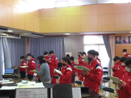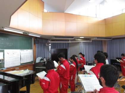 民謡「会津磐梯山」の歌唱に取り組みました。民謡独特の節回しや合いの手を味わいながら、歌うことができました。