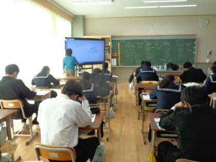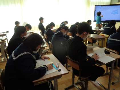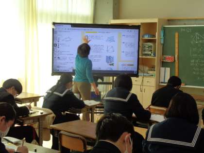 3年生の数学の授業は、図形問題への取組。教科書の練習問題に取り組んでいました。