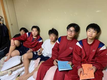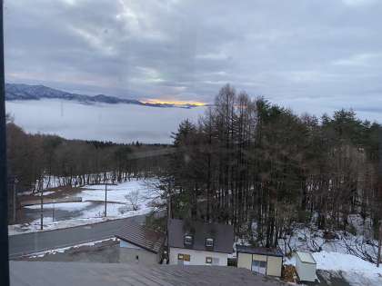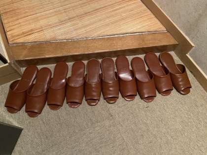 おはようございます。まだ眠そうです。スリッパがきちんと並べられていて素晴らしいですね。天気は回復しそうです。今日も元気に頑張りましょう!