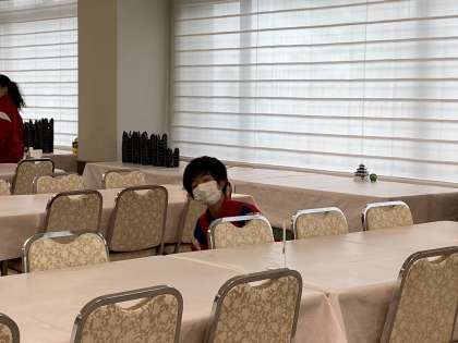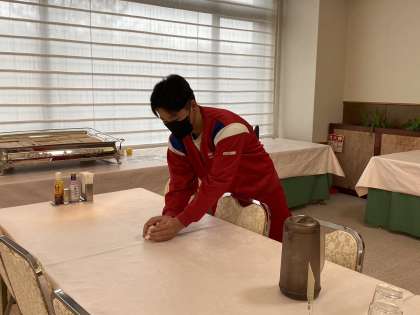 食後の片付けも協力してます!食事係は最後まで仕事を頑張りました。
