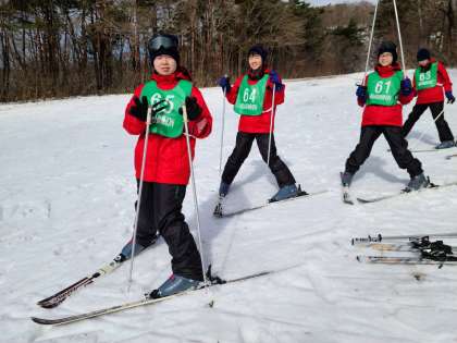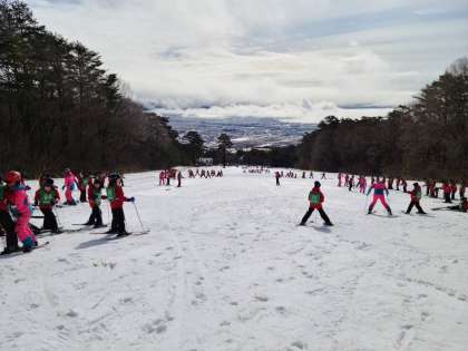 素敵な景色のなか、みんなスキーを頑張っています。転びながらも、何度もチャレンジしていて、たくましいです!