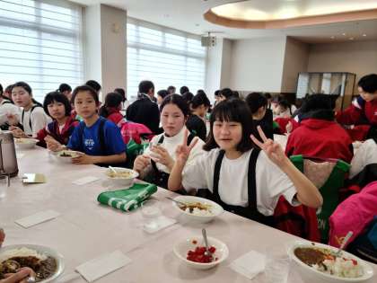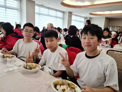 今日のお昼はカレー!みんなモリモリ食べています。ぴりりと辛いカレーが、疲れた体にしみます!