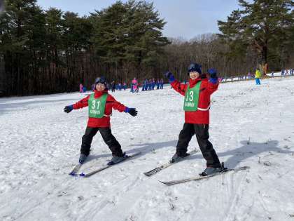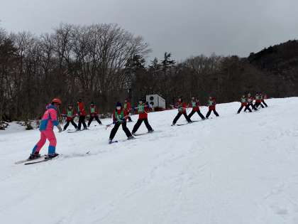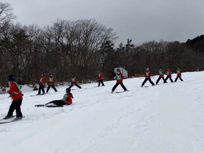 上手に並んで滑っています。お互いを気遣う声掛けがある等、スキーに慣れた行動が多々見られています。