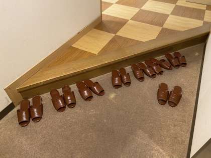 昨夜の様子ですがお風呂場入口にはきちんと揃えられたスリッパ。さすがです!
