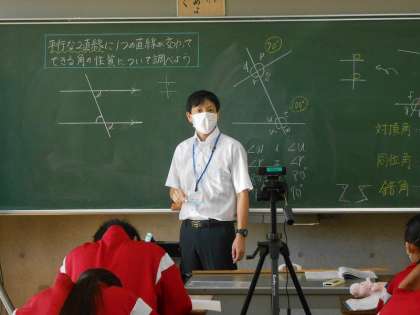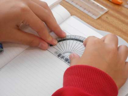 図形の角の学習です。分度器を使ってそれぞれの角の持つ特徴を確認しながら学習を種住めていました。