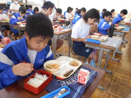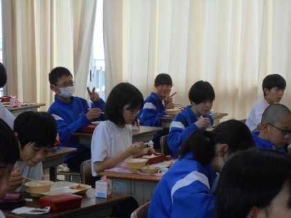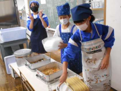 久しぶりの給食再開です。配膳の仕事や学級の友達との楽しい給食に気分が高まっている様子です。