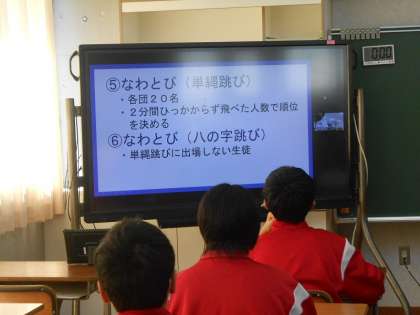 ZOOMをつかって学年主任の武藤先生が2学年各教室に今年の体育祭についての説明を行いました。そのあと団体種目を決める時間となりました。
