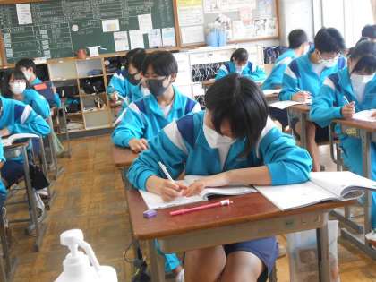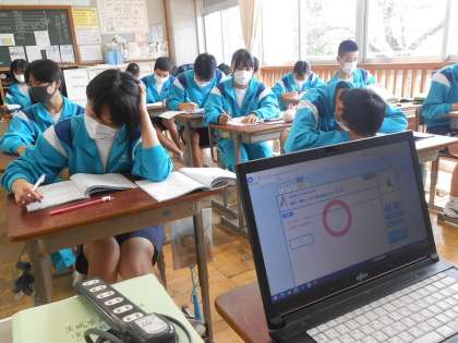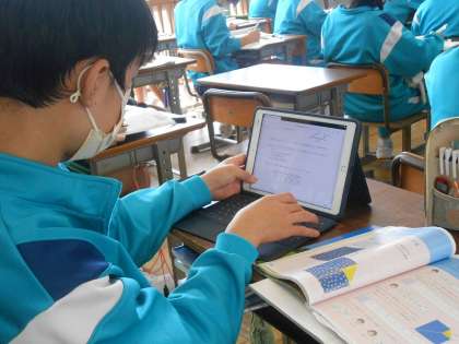 家庭学習にはとても有効な学習ツールであるeライブラリーについて、3学年の数学の時間に、期末テスト対策もかねて紹介と使い方を確認しました。