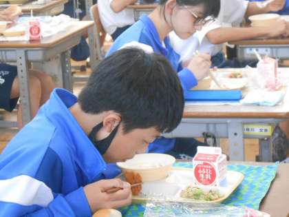 ミルクパン、クリームシチュー、カレーコロッケ、キャベツとツナのサラダ。今日のメニューです。作ってくれた人、材料を届けてくれた人、材料となるものを生産してくれた人、いろいろな人のおかげで給食が食べられるのです。感謝しなければなりません。