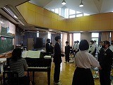 授業の初めは、「校歌」と「合唱の曲」から。指揮にチャレンジする生徒もいて、一人一人が活躍していました。担当の先生の素敵で力強い伴奏にのって、気持ちよく歌う生徒の姿が見られる音楽室です。