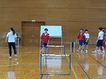 担当の先生の指導のもと、教育実習生が指導を行っています。今日の種目はハードル走。課題は「頭の高さを一定にして走り越すにはどうしたらいいか」です。暑さのため体育館での活動になりましたが、場の設定を工夫し、今日の課題に解決に向け、思い切り体を動かしていました。全力で活動に取り組む3年生。素晴らしい!