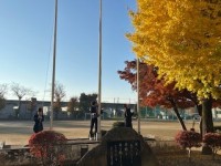 本校の国旗掲揚塔では、学級委員の生徒たちがいつもていねいに旗を揚げてくれています。今日も3人そろって、ていねいに旗をあげる姿が見られました。よい1日がスタートがしている守谷中学校です!
