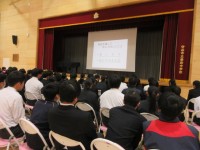 本日、3年生を対象に租税教室を実施しました。講師として、守谷市で活躍されている税理士の先生にお越しいただき、50分間の講話を行っていただきました。生徒たちは、私たちが普段利用している道路や学校、警...