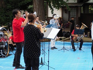 10月4日土曜日、愛宕中学校の目の前にある愛宕神社で祭りがあり、愛宕中学校吹奏楽部が招かれ演奏をしました。中のコーナーで保護者と指導者が大人のアンサンブルを披露し、「ふるさと」を情感豊かに演奏し、生徒も聞き惚れていました。地域に根ざし、地域の皆様を笑顔にする活動をこれからも続けていきます。