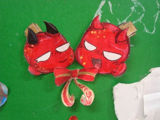 美術室の入り口近くにクリスマスツリーがありました。部員たちが放課後の時間を使って制作したオーナメントは、立体的に表現され、個性が光っていました。美術部の皆さん、楽しい活動ができていますね。