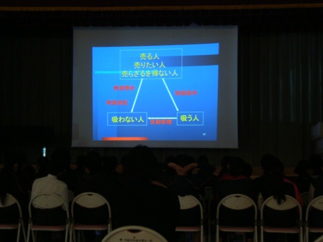 22日、外部講師をお招きし、2年生を対象とした薬物乱用防止教室を開催しました。昨年度までリモートで行っていたのですが、今年度から体育館で参集型で行いました。たばこやアルコールの害、近年社会問題となっているオーバードーズ、違法薬物の危険性について、専門的な知見からお話しいただきました。特に、日本と海外のたばこのパッケージや広告の違いの比較では、その警告の強さに生徒たちも驚いた様子。視覚的な情報の差から、薬物の持つ依存性や健康へのリスクを客観的に捉え直しました。生徒たちは、誘惑を断る強い意志と、正しい知識を持つことが自分自身の人生を守ることにつながると、真剣に学びを深めていました。