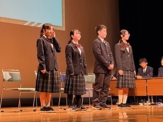 絆を力に!ライオンズ杯イングリッシュフォーラムでの輝き 公開日 2026/02/02 更新日 2026/02/02 学校全体 1月31日(土)、英語のプレゼンテーション大会「ライオンズ杯イングリッシュフォーラム」が開催されました。当日は、体調不良により、1,2年生両チームとも準備してきた5人ではなく4人での出場となりました。しかし、ステージに立った4人の姿に不安の色はありませんでした。「会場に来られなかった仲間の分まで、最高の発表にしよう」という強い想いが、息の合ったチームワークに繋がりました。練習してきた5人分の役割を4人で自然に補い合う姿は、まさに完璧なコンビネーション。その結果、両チームとも練習以上の、これまでで一番のプレゼンテーションを披露することができました。英語のスキルはもちろん、不足の事態をチームの結束力で乗り越えた生徒たちの姿は、観客の心に深く響く素晴らしいものでした。