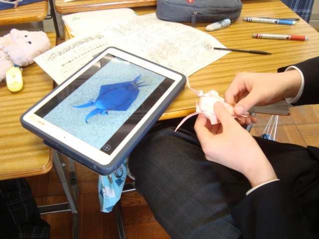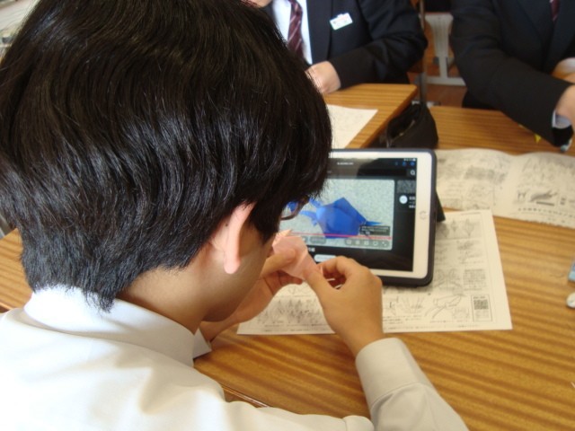 3年生の理科の授業では、古代生物を折り紙で再現するユニークな活動が行われました。生徒たちが挑戦したのは「アノマロカリス」などのカンブリア紀の生物。YouTubeの解説動画を真剣に視聴しながら、複雑な折り目に苦戦しつつも、見事にその不思議な姿を形にしていました。図鑑で見るだけでなく、実際に指先を使って立体を作り上げることで、古代生物の体の構造をよりリアルに実感できたようです。完成した作品を手に「ここが触手なんだ!」と盛り上がる姿も見られ、デジタル(動画)とアナログ(折り紙)を融合させた、3年生らしい探究心の光る時間となりました。