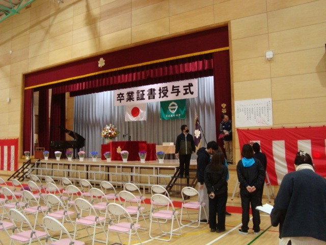 いよいよ明日に迫った卒業式。1・2年生の手によって会場準備が行われました。