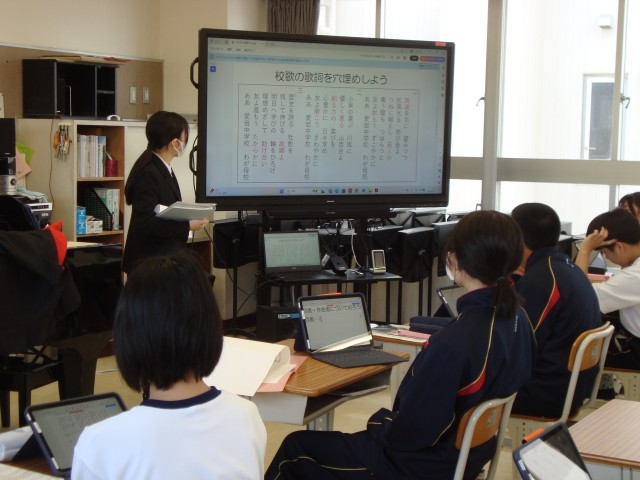 美術室では「一筆がき」の授業が行われていました。ペンを一度も離さずに描き上げるという制約の中で、身近な小物をどう表現するか。生徒たちは試行錯誤しながら、一筋の線に迷いのない個性を込めていました。一方、音楽室から聞こえてくるのは1年生の初々しい歌声です。「校歌」の練習が始まり、歌詞の意味を一つひとつ確認しながら、声を合わせる楽しさを学んでいました。