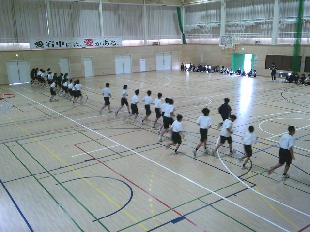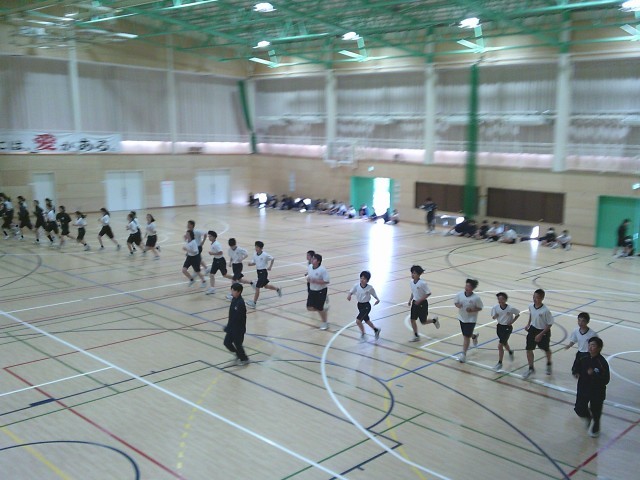 4月21日、2年生が体力テストの「シャトルラン」を実施しました。生徒たちは事前に決めた自分の目標に向かって、一歩一歩力強く走りました。次第に息が上がり、苦しくなる場面では、走っている仲間を後押しする「頑張れ!」という応援の声がわき起こりました。また、最後まで走り抜いた生徒に対しては、終了と同時に自然と温かい拍手が送られ、体育館に温かな一体感が広がっていました。
