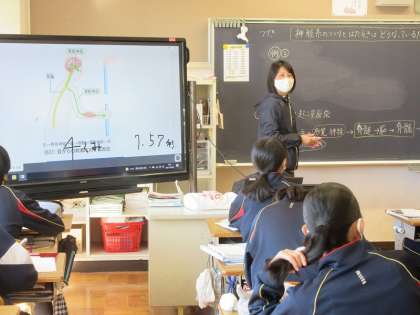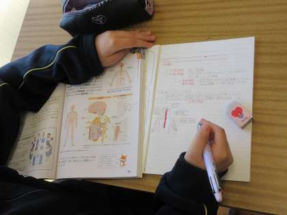 ヒトの神経系のつくりと働きについて学習しています。手や目から入ってきた情報は,どのように伝わっていくのかの話し合いをしています。