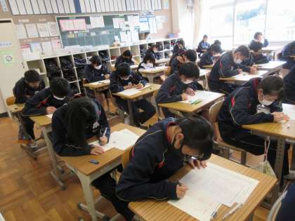 いばらきっ子郷土検定をしています。どのクラスも集中して問題に取り組んでいます。