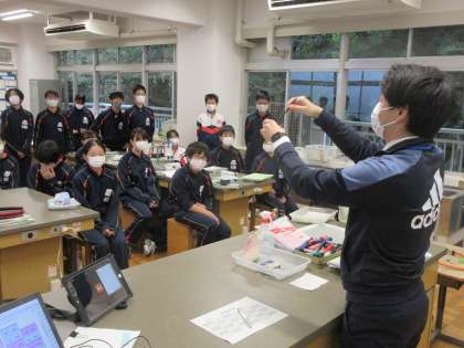 水溶液の学習です。姿勢がよく,話をよく聞いています。