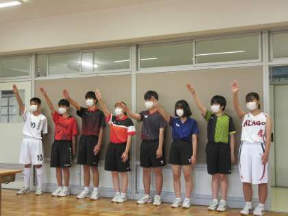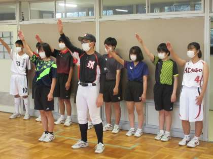 各部活動の部長、副部長から決意表明がありました。大会に臨む気持ちと大会が実施されることに感謝の気持ちが込められていました。