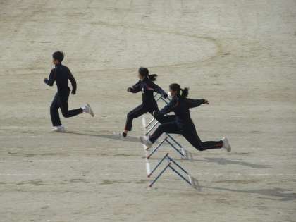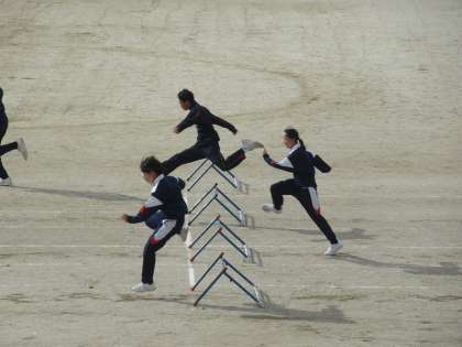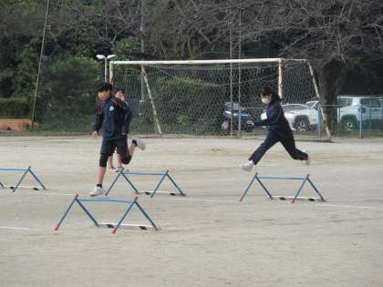 ハードルの学習をしています。ハードルに慣れるため低くして練習をしています。