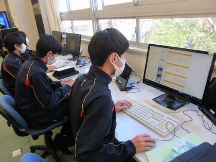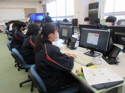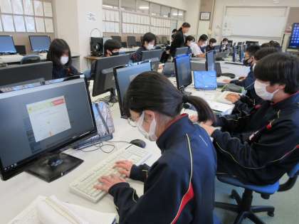 タイピングをしています。地名,ことわざ,単語,文章等,次々に出てくる言葉を入力しています。両手を使って,スムーズに入力しています。