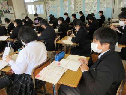 心身の機能の発達と心の健康の学習です。赤ちゃんと,私達(中学生)の呼吸数や心拍数の違いから,呼吸器・循環器の発育・発達について考えていました。
