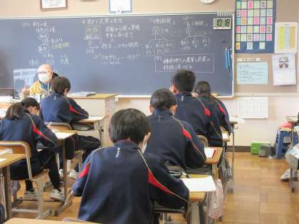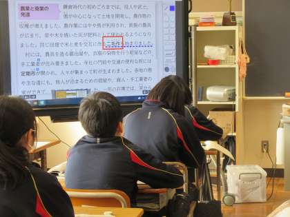 鎌倉時代の武士や民衆の暮らしについて学習しています。地頭の支配や農業と商業の発達について,理解を深めていました。