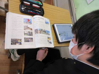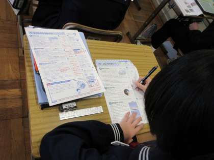 単元のまとめのプリントをしています。疑問点は,教科書を見て確認しながら進めています。