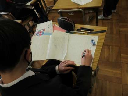 随筆を書いています。下書きを推敲したり,推敲した下書きをもとに清書を書いたりしています。日常生活の出来事を分かりやすく表現してます。