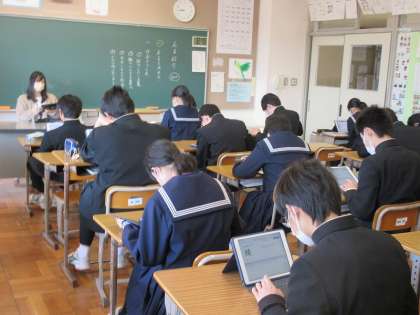 名言をみんなに紹介していきます。紹介したい名言,誰の名言か,自分に与えた影響,どんなときに思い出してほしいか等をタブレットにまとめています。