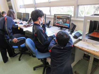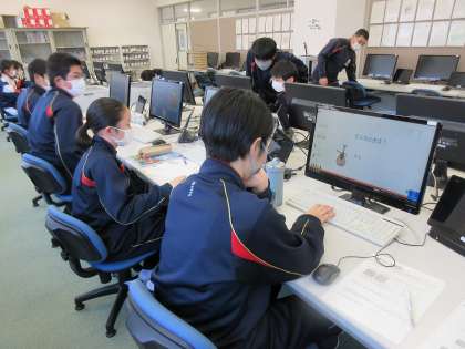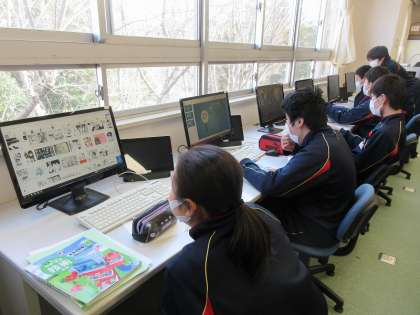 新商品を売り込むためのデジタル作品をつくっています。レイアウトや配色を考え,アニメーション活用し,工夫した作品に仕上げています。