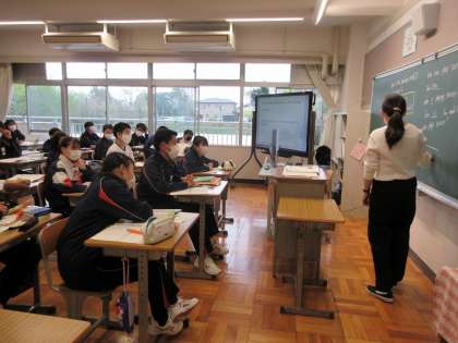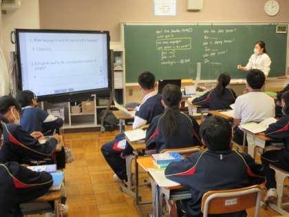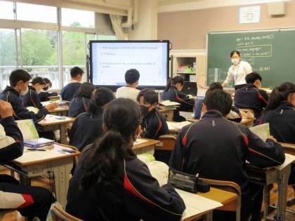 あるテーマについて英文で書かれたクイズ形式のレポートを読んで,これまでに学習したことを使って答えています。