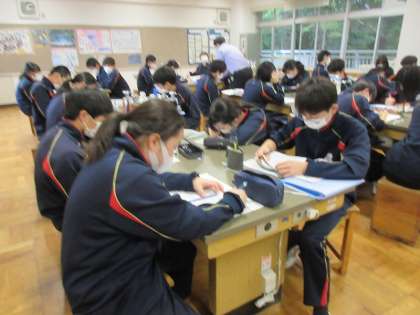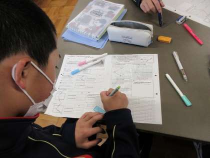 力の合成の学習です。向きが違う2つの力の合力の大きさや向きはどのようになるのかを考えています。