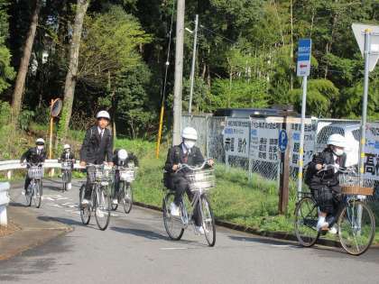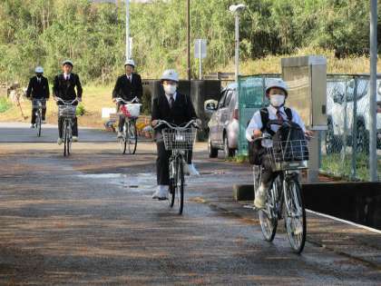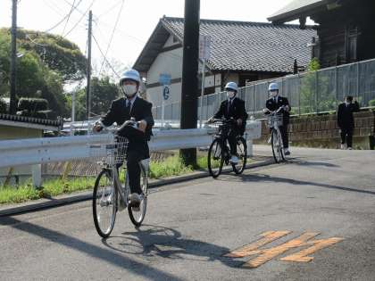 1年生の自転車の後輪に,荷台にくくりつけていたゴム紐が絡まってしまいました。それを,2,3年生の2名の生徒が手を汚しながら,はさみを使いながら,ゴム紐を取ってくれていました。無事に取ることができ,よかったです。1年生の生徒もしっかりとお礼を言うこともできました。助けてくれて,ありがとう。