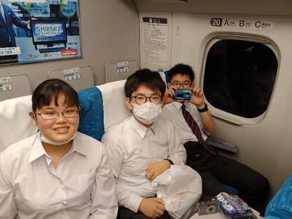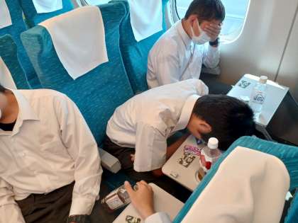 浜松駅を通過しました。カードゲームや談笑など、各々楽しんでいます。