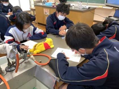 有機物を燃やしたときの、化学反応式について学習しています。難しそうですが、一生懸命取り組んでいます。