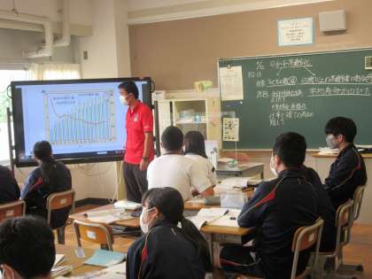 少子高齢化について学習しています。現状や原因を共有し,私達の生活や社会はどのようになってきているのかを話し合っています。