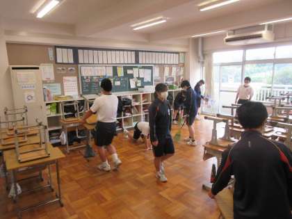 今日は,新人戦に向けての選手壮行会があります。そのため,日課が変更になり,朝清掃をしています。短時間で丁寧に取り組んでいます。ありがとう。