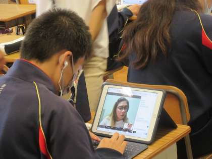 DMM英会話をしています。自分の英語力を最大限に使って,アドリブ要素を入れながら,自己紹介をしています。みんな集中して取り組んでいます。