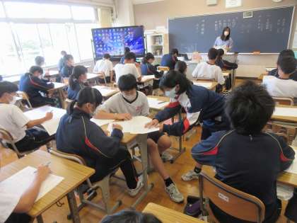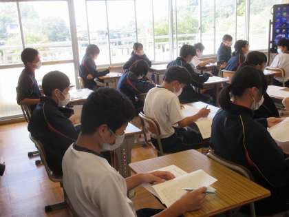 期末テストの確認をしています。テストの間違えたところを友達と確認しています。一つ一つ確認し,力を付けてほしいです。