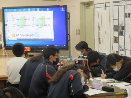 呼吸の学習です。植物も,人と他の動物と同じように呼吸をしているのか,実験結果をもとに,考察しています。