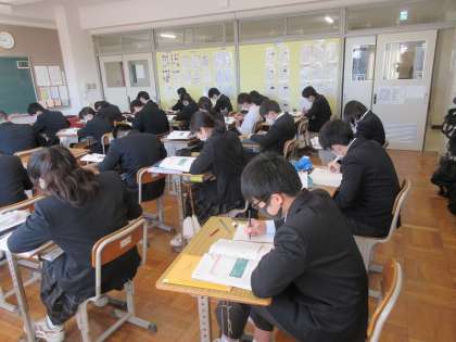 三平方の定理の学習です。三平方の定理を使って,直角三角形の辺の長さを求めています。集中しています。